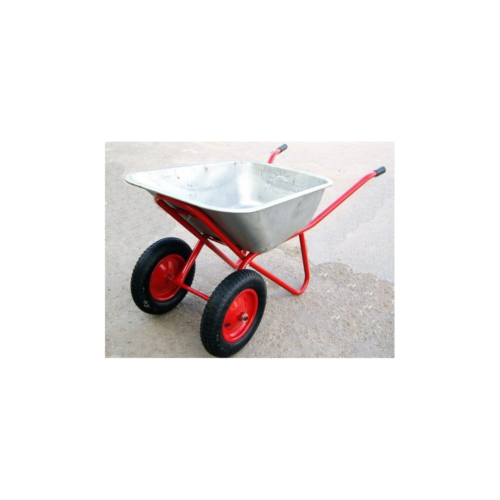 Строительная двухколесная усиленная тачка Variant вместительность 110 л, грузоподъемность 180кг 12110 предназначена для перевозки тяжелых грузов – земли, песка, раствора, также камней или мусора. Кузов тачки выполнен из толстого оцинкованного стального листа, борта завальцованы. Усиленная рама состоит из двух частей. Собрать тачку – быстро и легко. Два надувных колеса с камерой (380 мм) на подшипниках позволяют легко катить тачку даже по неровной поверхности.