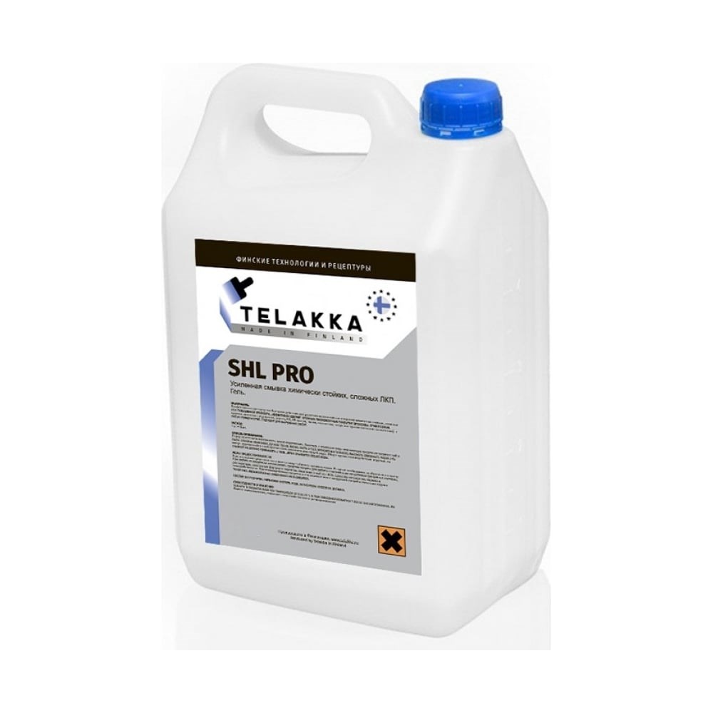 Усиленная смывка химически стойких ЛКП Telakka SHL PRO 5 кг 4631160698415 - профессиональное средство быстрого действия для удаления многослойных покрытий химически стойких, сложных ЛКП повышенной стойкости. Эффективно удаляет сложные лакокрасочные покрытия (эпоксиды, огнеупорные, судовые, мостовые, ж/д краски, грунты, НЦ, ХВ краски, эмали, шпатлевки, защитные краски военного назначения) с любых поверхностей. Подходит для внутренних работ.