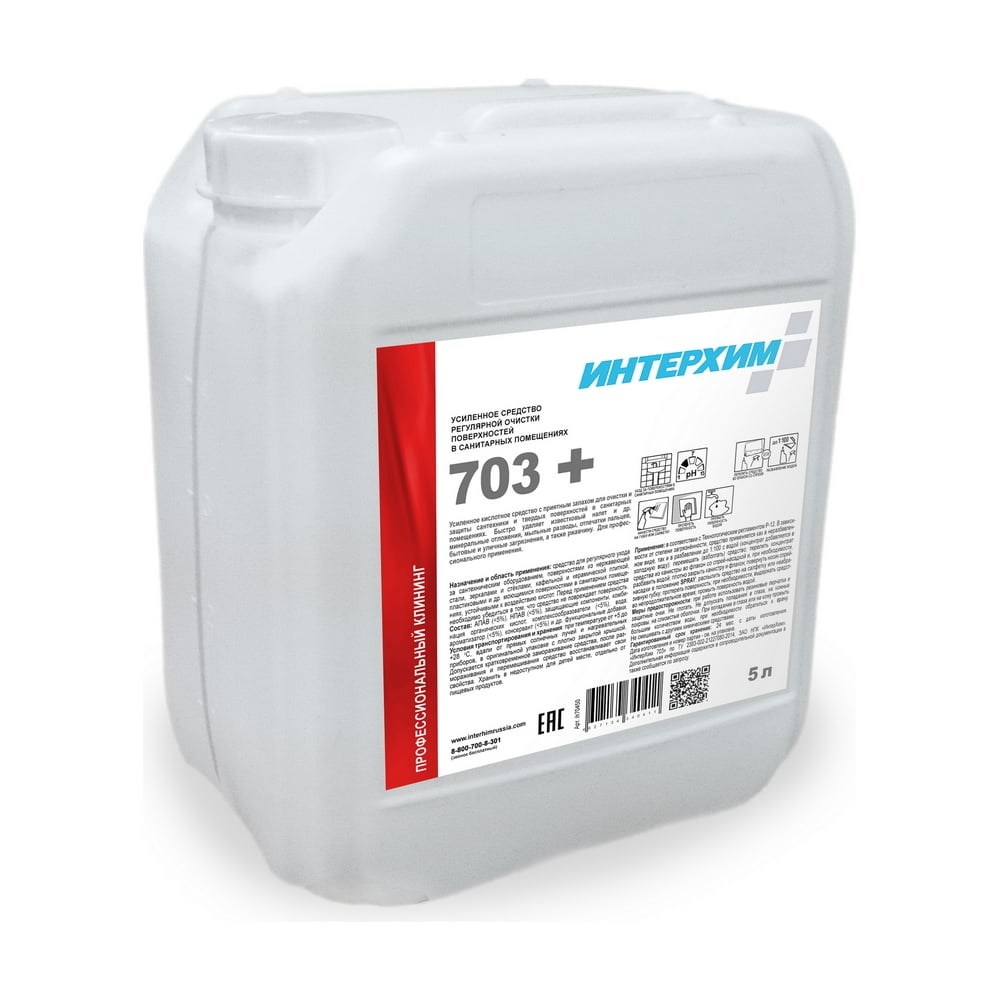 Усиленное средство очистки поверхностей в санитарных помещениях ИНТЕРХИМ 703 PLUS 5 л ih70450 - средство для ухода за сантехническим оборудованием, поверхностями из нержавеющей стали, зеркалами и стёклами, кафельной и керамической плиткой, пластиковыми и др. моющимися поверхностями в санитарных помещениях, устойчивыми к воздействию кислот.Перед применением средства необходимо убедиться в том, что средство не повреждает поверхностьНе содержит хлора и абразивов.Для интенсивной очистки средство применяется без разбавления.Быстро удаляет следы ржавчины, известковый, мыльный налет, отпечатки пальцев и др. загрязнения с сантехнического оборудования, поверхностей из нержавеющей стали, стекол и зеркал, кафельной и керамической плитки, пластиковых и др. поверхностей.Допускается разведение водой до 1:100.