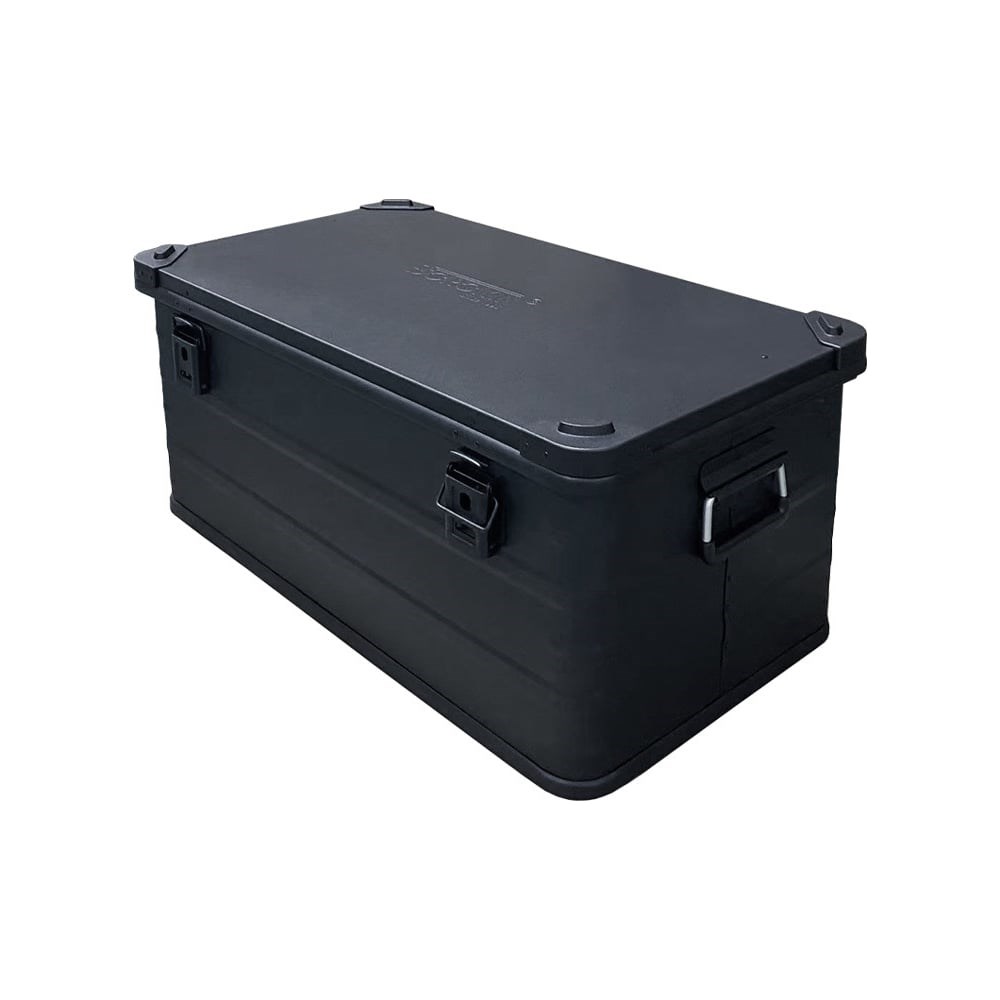 Универсальный в эксплуатации ящик широко используется на водном и в автомобильном транспорте для перевозки ценных грузов, так как, благодаря своей форме, способен оставаться статичным во время качки, что делает его отличной альтернативой пластиковым ящикам и алюминиевым кейсам. Плюсом данного ящика является наличие усиленной крышки с алюминиевыми уголками для установки изделий в колонну, и корпуса с дополнительными прокатками в качестве ребер жесткости на каждой из граней ящика. Усовершенствованная технология сварки, применяемая при производстве данных сундуков не только делает внешние и внутренние швы визуально неприметными, но и обеспечивает показатели пыле- и влагозащитным кейса соответствующие классу IP 54. Ящик устойчив к ультрафиолетовому излучению, коррозии и агрессивным веществам. Хотим выделить наличие приятных деталей. Покрытие кейса из черного жидкого пластика предотвращает появление царапин на его поверхности, что сохраняет изделие в первозданном виде намного дольше чем базовые алюминиевые ящики без окрашивания. Ящик обладает подпружиненными усиленными ручками-скобами, а его крышка прикреплена к основанию широкими и прочными металлическими петлями. Ограничителем полного открытия крышки выступают стопорные ремни на прочных металлических заклёпках. Ящик может быть дополнительно укомплектован поролоновым вкладышем необходимого размера и конфигурации для более безопасной транспортировки инструмента, а также дорогостоящей аппаратуры и др.