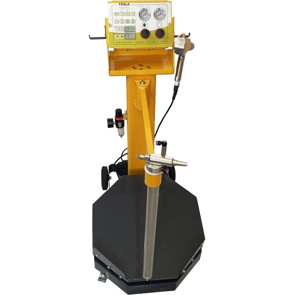 Установка порошковой окраски Teslatech Tesla OptimaV с вибростолом 02279791 - высокопроизводительная, профессиональная, надежная и простая в эксплуатации современная установка напыления порошковых красок в электростатическом поле с вибростолом и функцией PULS COATING, многофункциональным цифровым дисплеем и улучшенной конструкцией тележки. Возможность работы в трёх настраиваемых или автоматических режимах для окрашивания плоских деталей, изделий сложной формы и перекрашивания. Точная цифровая настройка электрических параметров. Во многих установках «Tesla» применяется технология PULS COATING. Она позволяет накладывать слой краски 40-70 микрон и снижает ее потребление на 20%. С помощью нее можно качественно перекрашивать поверхности и избегать образования «апельсиновой корки».