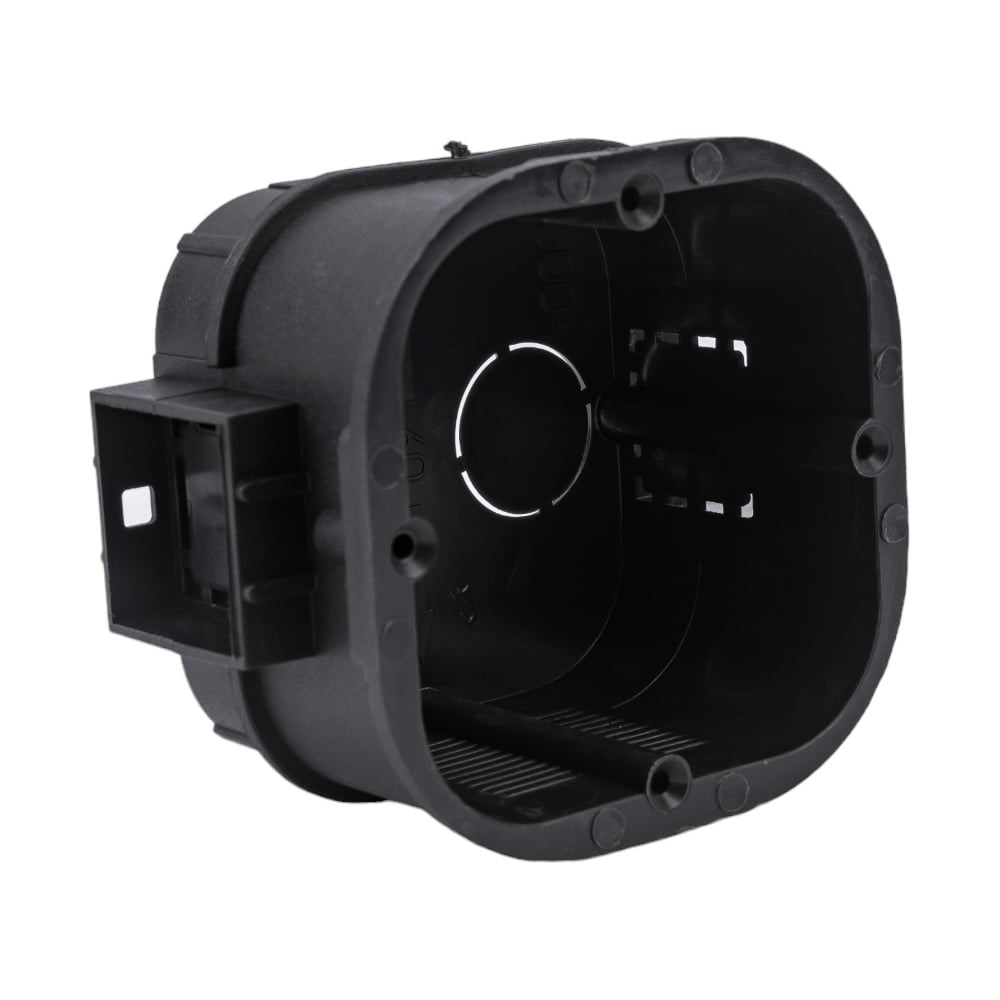 Коробка установочная блочная усиленная для скрытой проводки серии ТУСО. Применяется для установки розеток, выключателей и других электроустановочных изделий в кирпичных и бетонных стенах. Цвет коробки - черный. Температура монтажа: от -5 до +60 С.