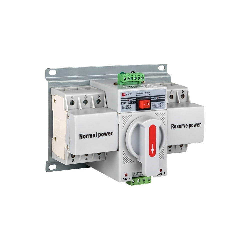 Устройство АВР EKF предназначено для обеспечения резервным электроснабжением нагрузки, подключенной к системе электрообеспечения, имеющей основной и резервный вводы. Устройство АВР автоматически подключает резервную линию питания в случае исчезновения напряжения на основной линии. Предназначен для трехфазных четырехпроводных (или однофазных однопроводных) систем двойного энергопитания переменного тока с частотой 50/60 Гц, номинальным напряжением 400 В/230 В и номинальным током до 63А. Устройство выполнено в виде моноблока и состоит из блока управления и двух модульных автоматических выключателей. На блоке управления имеется рычаг ручного переключения. Такая конструкция позволяет уменьшить габариты и площадь установки АВР.ПрименениеЖелательное применение АВР для потребителей II категории:• второстепенные производственные нагрузки;• административные здания;• в качестве вводных автоматических выключателей в электрощите;• объекты гражданского, коммерческого строительства;• частное сельскохозяйственное производство.