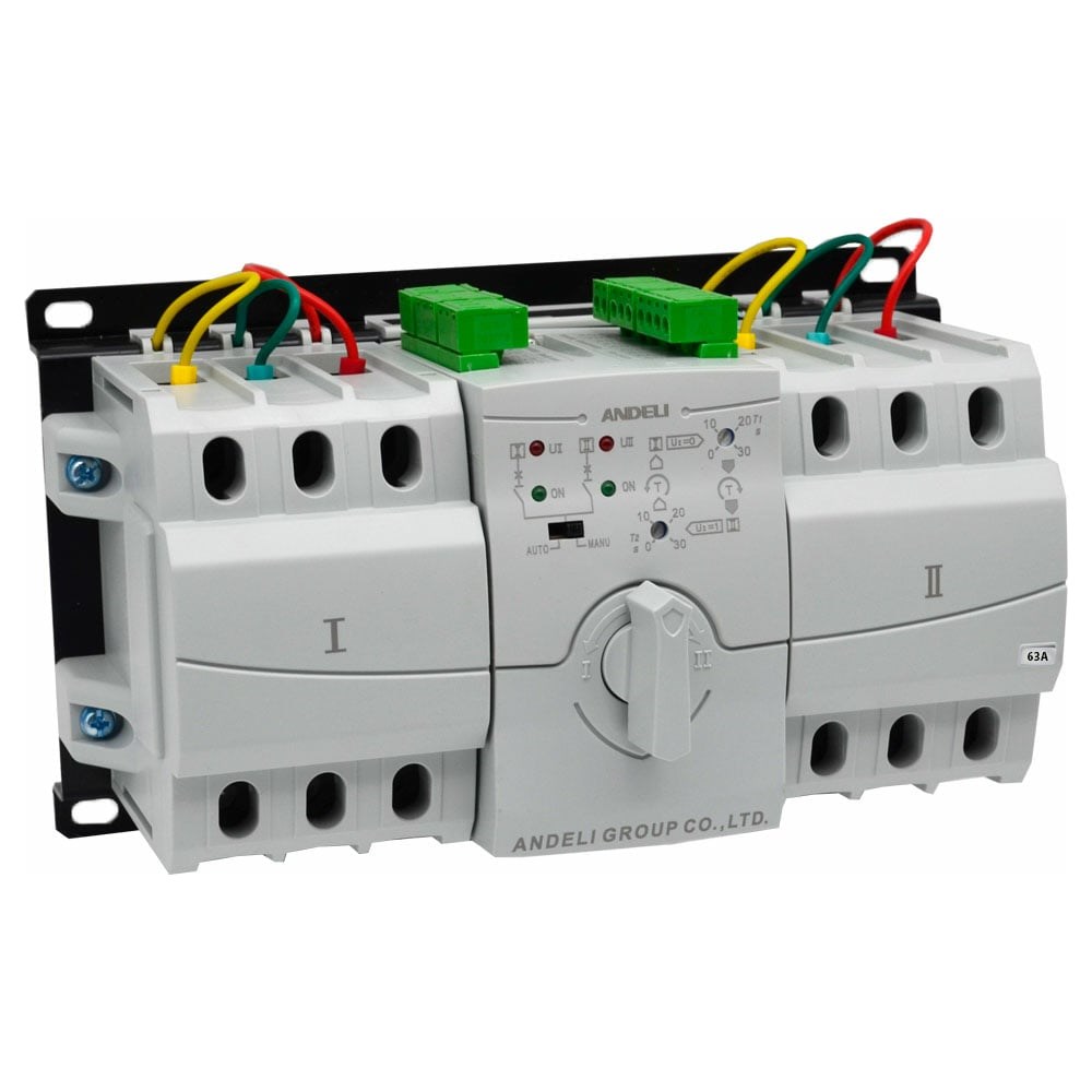 Устройство автоматического ввода резерва (АВР) ANDELI HATS9 предназначено для автоматического перехода на резервный источник питания в электрических сетях переменного тока частотой 50 Гц номинальным рабочим напряжением до 400 В и номинальным током от 6А до 63А.Серия HATS9 обеспечивает автоматическое переключение одной или нескольких нагрузок сети с одного источника питания на другой в целях обеспечения нормального функционирования оборудования на объектах.HATS9 применяется на промышленных, коммерческих и бытовых объектах, а также в жилых домах. HATS9 имеет новый конструктив на основе модульных автоматических выключателей обеспечивает максимальную компактность устройства.ХарактеристикиНоминальный ток 32 (А)Количество полюсов: 3РПКС: 4,5 кАКонтроллер типа В (базовый тип на 3 положения).тип расцепления - С (уставка 5-10 In).Установка интегрированная.Управление генератором: набор 5А реле с сухими контактамиСвязь с противопожарной системой: ДаАвтоматический переход с основного ввода на резервный с самовозвратом;Автоматический режим работы на двух разноцветных вводах;Автоматический переход от сети к генератору.Задержка перевода на второй ввод: Плавно регулируется в диапазоне от 0.2с до 30сЗадержка самовозврата на первый ввод: Плавно регулируется в диапазоне от 0.2с до 30сРассеиваемая мощность не более 5ВтРабочая температура окружающей среды от -20С до +60С.