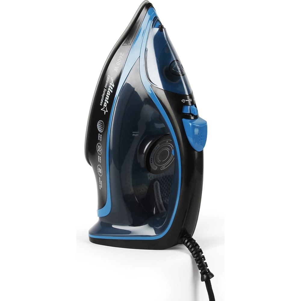 Одной из ключевых особенностей электрического утюга является прочная керамическая подошва, которая не только гарантирует долговечность, но и обеспечивает плавное скольжение по тканям. Есть функция самоочистки подошвы, что избавляет от необходимости вручную удалять стойкий налет. Это означает, что ваш утюг всегда будет в отличном состоянии и всегда готов к безупречному глажению. В режиме глажки с паром вы можете воспользоваться преимуществами вертикального отпаривания, которое идеально подходит для отпаривания одежды на вешалке или штор. Кроме того, регулируемая мощность пара позволяет настроить интенсивность подачи пара до 121 г/мин, что позволяет легко разглаживать даже самые жесткие складки. Функция увлажнения меняет правила игры, поскольку она эффективно увлажняет ткань перед глажкой, облегчая разглаживание складок. Больше не нужно бороться со складками — паровой утюг для одежды Atlanta сделает всю тяжелую работу за вас. Особенности модели: Функция автоматического отключения Долговечная керамическая подошва Функция самоочистки Противокапельная система Защита от накипи Сухой или паровой режим глажения Функция вертикального пара Прозрачный резервуар для воды Функция увлажнения Объем бачка 380 мл Длина провода питания 1,9 м Регулировка подачи пара до 32 г/мин Дополнительная подача пара до 89 г/мин Номинальная мощность 2400-2600 Вт