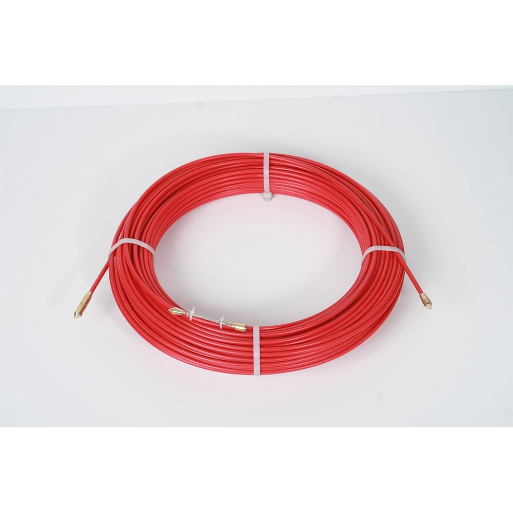 УЗК ПОЛИКОМ 6/30 в бухте 4687202399611 применяется строителями и монтажниками для протяжки витой пары и других видов кабеля через трубы, металлорукава, короба и каналы при прокладке линий компьютерной и телефонной связи, электропроводки, при установке домофонов, видео и аудиосистем, линий охранной сигнализации в офисных и жилых зданиях. Устройство представляет собой стеклопластиковый пруток, который снаружи покрыт специальной защитной оболочкой, выполненной из износостойкого полиэтилена высокой плотности. С одной стороны УЗК находится наконечник из латуни, на который в каждом конкретном случае, в зависимости от условий протяжки, можно накрутить жёсткую или гибкую насадку (последняя наиболее удобна для использования в каналах уже наполненных большим количеством кабелей или с высоким числом изгибов), а с другой стороны жёстко закреплён наконечник (также из латуни) для фиксации кабеля, который необходимо протянуть. В комплекте с мини УЗК гибкая насадка.