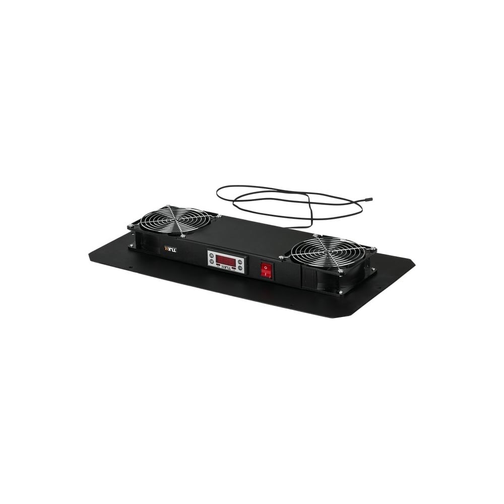 Вентиляторный блок TLK, 2 вентилятора с терморегулятором и датчиком, BK TLК-FAN2-TERM-BK устанавливается в телекоммуникационный шкаф. Предназначен для охлаждения активного оборудования. Блоки устанавливаются в специальные ниши в крышах настенных шкафов TLK серий TWA, TWC. Разъем питания на вентиляторном блоке типа IEC-60320 C14.
