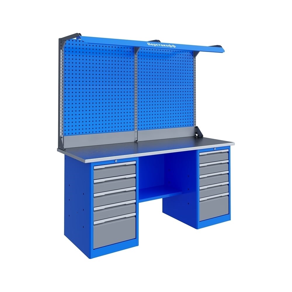Верстак Верстакофф TNC 181.55.2-2F 125293 представляет собой надежное и высокопрочное рабочее место, на котором можно проводить широкий спектр различных работ. Качественная отделка столешницы и прочное основание обеспечивают длительный срок службы верстака даже в сложных условиях, например, при металлообработке или в местах с повышенной влажностью. Размеры верстака и его оснащение обеспечивают достаточное количество рабочего пространства и места для хранения инструмента. Дополнительно верстак можно оснастить вспомогательными элементами: полками, лотками, ящиками и крючками. Верстак поставляется в разобранном состоянии. Болтовая сборка не требует использования специального инструмента. Основные компоненты тумб и основания верстака сварены, что обеспечивает жесткость конструкции. Преимущество порошкового окрашивания также позволяет избежать царапин и сколов, что сохраняет товарный вид в течение длительного периода времени.НАВЕСКИ НЕ ВХОДЯТ В БАЗОВУЮ КОМПЛЕКТАЦИЮ