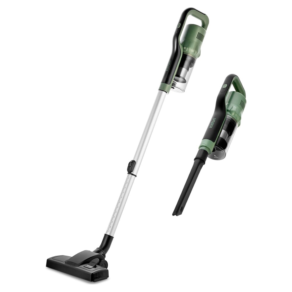 Вертикальный пылесос КТ-5237 очень удобен при локальной уборке. Вертикальный пылесос хорошо подходит для оперативной уборки, например, рассыпанных крошек или песка от обуви в коридоре. Конструкция «2 в 1» предусматривает наличие ручного пылесоса, который удобно использовать отдельно. Ручным пылесосом можно пропылесосить углы и плинтусы, обивку мебели, пыль со шкафов (куда обычным пылесосом очень трудно дотянуться из-за ограниченной длины шланга), шкафчики на кухне или в гостиной, книжные полки, коврики в автомобиле или багажник. Пылесос комплектуется напольной щеткой, которая помогает качественно справиться с очисткой гладких поверхностей и ковровых покрытий с не очень длинным ворсом. У напольной щетки есть переключение для уборки гладкий и ковровых покрытий. Также к пылесосу прилагаются щелевая насадка и насадка «2 в 1», а также кронштейн для настенного хранения устройства и насадок. Насадка «2 в 1» может использоваться как безворсовая или ворсовая насадка. Пылесос оборудован современным циклонным фильтром, обеспечивающим хорошую очистку. Пылесборник легко снимается, а пыль из него вытряхивается очень просто. В пылесосе установлены фильтры грубой и тонкой очистки, которые задерживают частички пыли. Фильтры можно снять и промыть водой.