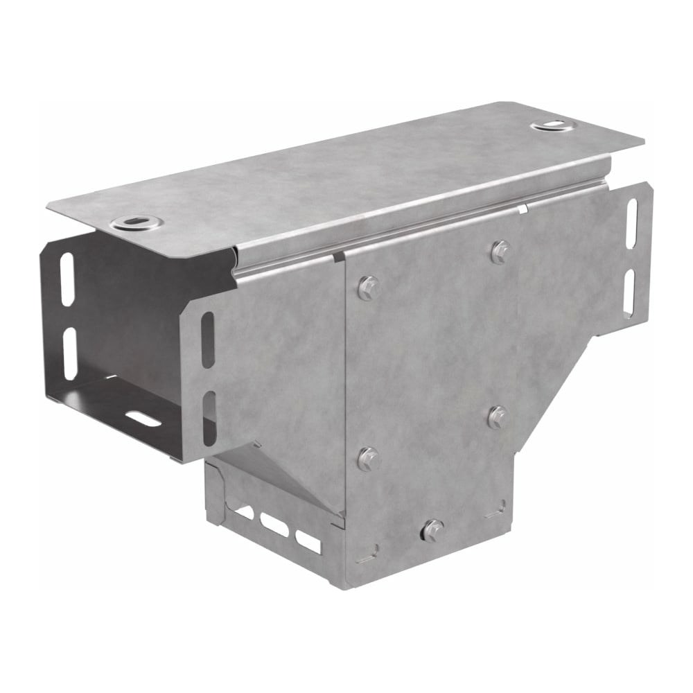 Аксессуары изготовленные из стали с защитным покрытием по методу Сендзимира – это изделия, на которых защитное цинковое покрытие было нанесено на листовую сталь перед изготовлением. Толщина защитного покрытия варьируется от 10 до 22мкм. Климатическое исполнение изделий УХЛ2, что предусматривают эксплуатацию в помещении и под навесом, при температуре эксплуатации от -80 до +150°С. Применяется для обеспечения полноразмерного ответвления горизонтальной кабеленесущей системы из лотков металлических в вертикальном направлении.
