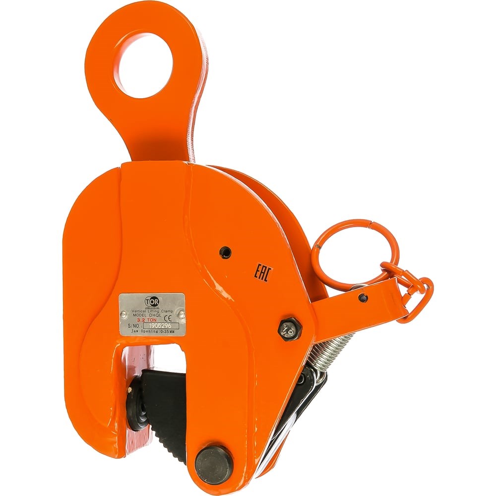 Вертикальный захват TOR DHQL Tor 122324 предназначен для фиксации, подъема и перемещения грузов. Оснастка состоит из корпуса и фиксирующего элемента. Поднятый груз удерживается в вертикальной плоскости при помощи трения нажимного языка о поверхность груза. Вертикальный захват имеет грузовое крепление в виде круглого отверстия.