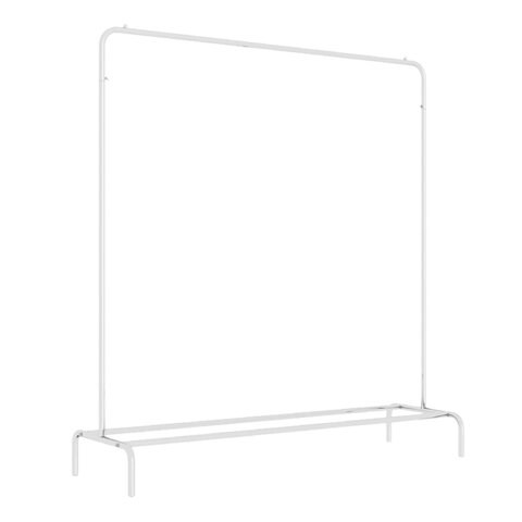 Железная перекладина вмещает до 18 плечиков, распределенная нагрузка — до 30 кг. Перекладина оснащена ограничителями, предотвращающими соскальзывание плечиков. Внизу полка для размещения обуви, коробок или органайзеров. На ножках предусмотрены заглушки, защищающие пол от повреждений. Мобильная благодаря минимальному весу. Изделие поставляется в разобранном виде в картонной коробке. Простая сборка согласно инструкции, шестигранный ключ в комплекте.