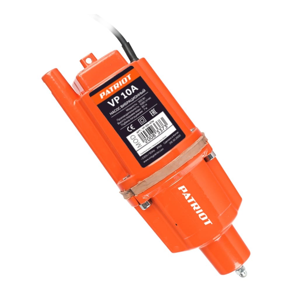 Вибрационный насос PATRIOT VP 10А - аппарат для подъема чистой воды из колодцев, естественных водоемов, скважин диаметром от 10 см. Корпус изготовлен из алюминиевого сплава и не подвержен коррозии, что повышает срок службы насоса. Пропускная способность составляет 1080 л/час. Насос прост в установке и не нуждается в сложном техническом обслуживании.