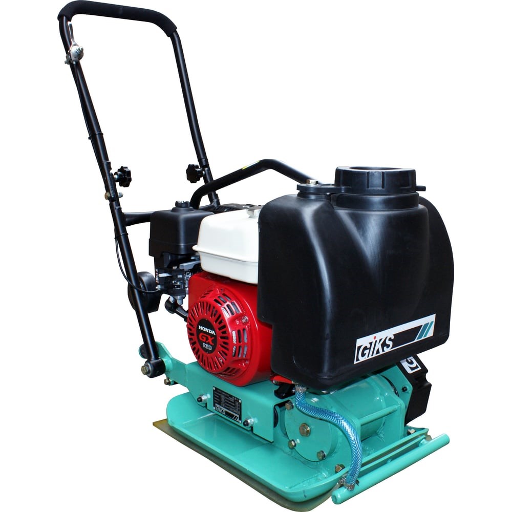 Виброплита GIKS 65 кг Honda GX160 5.5 л.с. PC60HSET оснащена мощным и производительным бензиновым двигателем Honda GX160 4000 Вт. Рычаг управления дроссельной заслонкой расположен на рабочей рукоятке аппарата для удобства пользователя. Наличие бака для воды и системы подачи жидкости в уплотняемую зону обеспечивает улучшенное качество обработки.