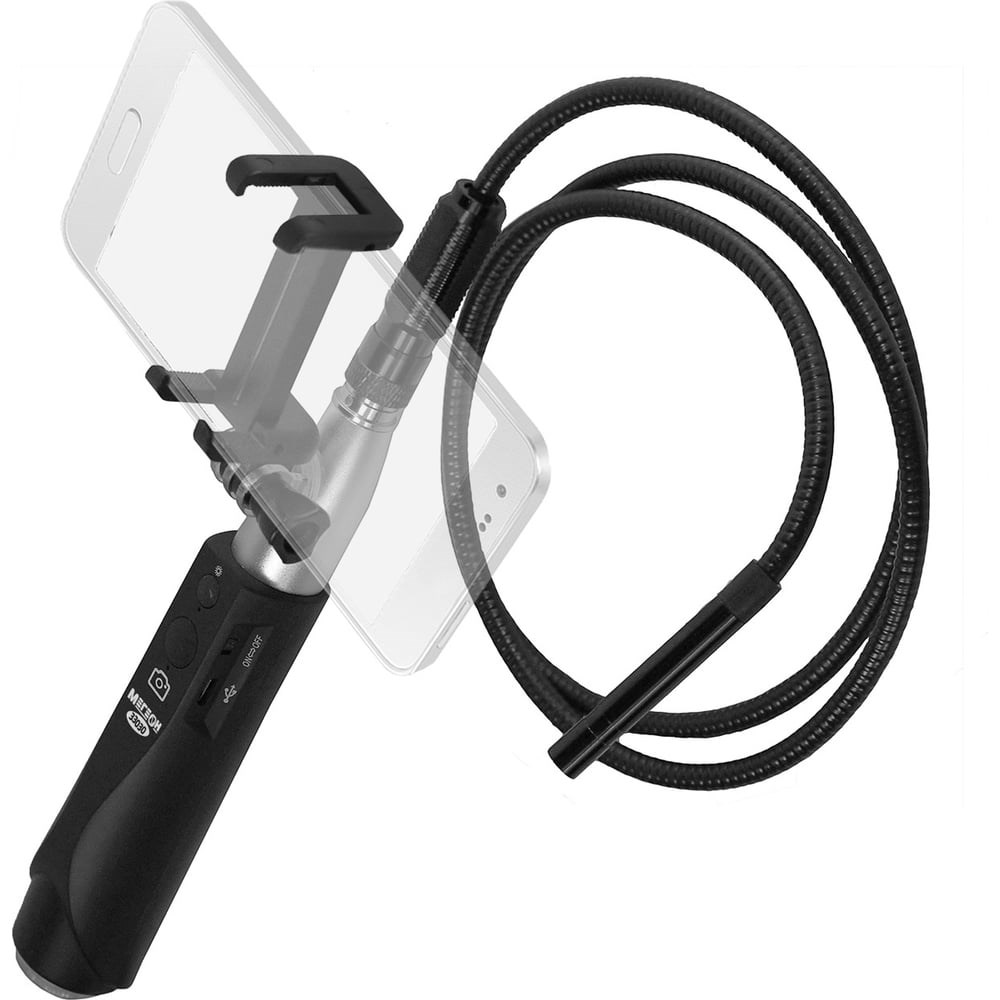 Видеоскоп МЕГЕОН 33030 к0000034226 представляет собой видеоскоп в виде рукоятки эргономичной формы, на которою с помощью держателя устанавливается мобильное устройство связи и полужесткого зонда. Передача изображения от камеры на монитор осуществляется OTG - кабелем. Подсветка пространства перед объективом обеспечивается шестью светодиодами высокой интенсивности. Благодаря переносу и сохранению информации в память гаджета iOS или Android достигается максимальное удобство, так как позволяет переслать полученные файлы по электронной почте, мессенджерами или социальными сетями. Помимо автономного использования предусмотрена возможность применять эндоскоп стационарно, подключив его к персональному компьютеру. Для выполнения специфических задач в комплекте к изделию имеются дополнительные насадки: крючок, магнит и зеркало. Транспортировка и хранение выполняется в удобном футляре, в котором хранится прибор и аксессуары к нему.