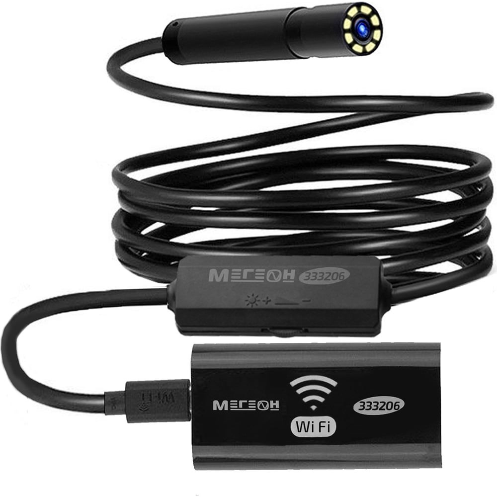 Видеоскоп МЕГЕОН 333206 к0000035924 осуществляет беспроводную передачу данных при помощи Wi-Fi. Размер изображения зависит только от диагонали экрана личного смартфона или планшета. Прибор может работать с большим количеством мобильных средств связи. Передатчик эндоскопа обеспечивает связь устройств на расстоянии от 5 до 30 метров. Видеонаблюдение обеспечивается пыле- и влагозащищенной камерой диаметром 8 мм. Яркая светодиодная подсветка высокой интенсивности гарантирует прекрасную видимость в полном отсутствии освещения. Программное обеспечение позволяет эксплуатировать совместно с операционными системами на базе Android, IOS и Windows. Необходимое приложение доступно для скачивания без ограничения в Play Market, APP Store и на сайте компании. Для работы с персональным компьютером требуется обязательное наличие функции Wi-Fi.
