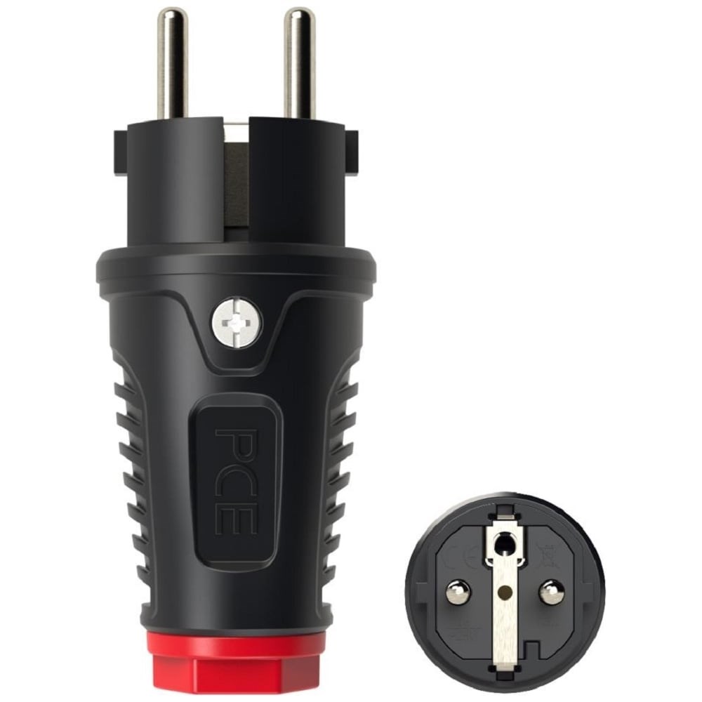 Кабельная вилка 16А 220V 2P+E IP54 корпус черный, маркер красный 0522-sr PCE отличается высокой устойчивостью к различным химическим веществам. Номинальное напряжение сети 220В. Покрытие контактов - никель.