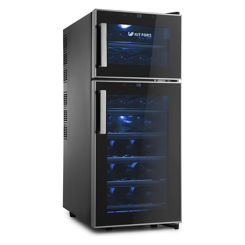 Винный шкаф KITFORT КТ-2407 служит для правильного хранения вина, подаренного друзьями, привезённого из-за границы или купленного по случаю. Камеры винного шкафа Kitfort КТ-2407 снабжены раздельными климатическими зонами, в которых можно хранить разные сорта вина при разной температуре. Рабочий температурный диапазон винного шкафа выставляется отдельно для каждой зоны в пределах от 7 до 18 °С для верхней и от 10 до 18 °С для нижней с шагом в 1 °С. Винный шкаф оборудован семью надежными металлическими полками. Дверца шкафа из тонированного стекла не пропускает УФ-излучение, что исключает вероятность окисления вина.