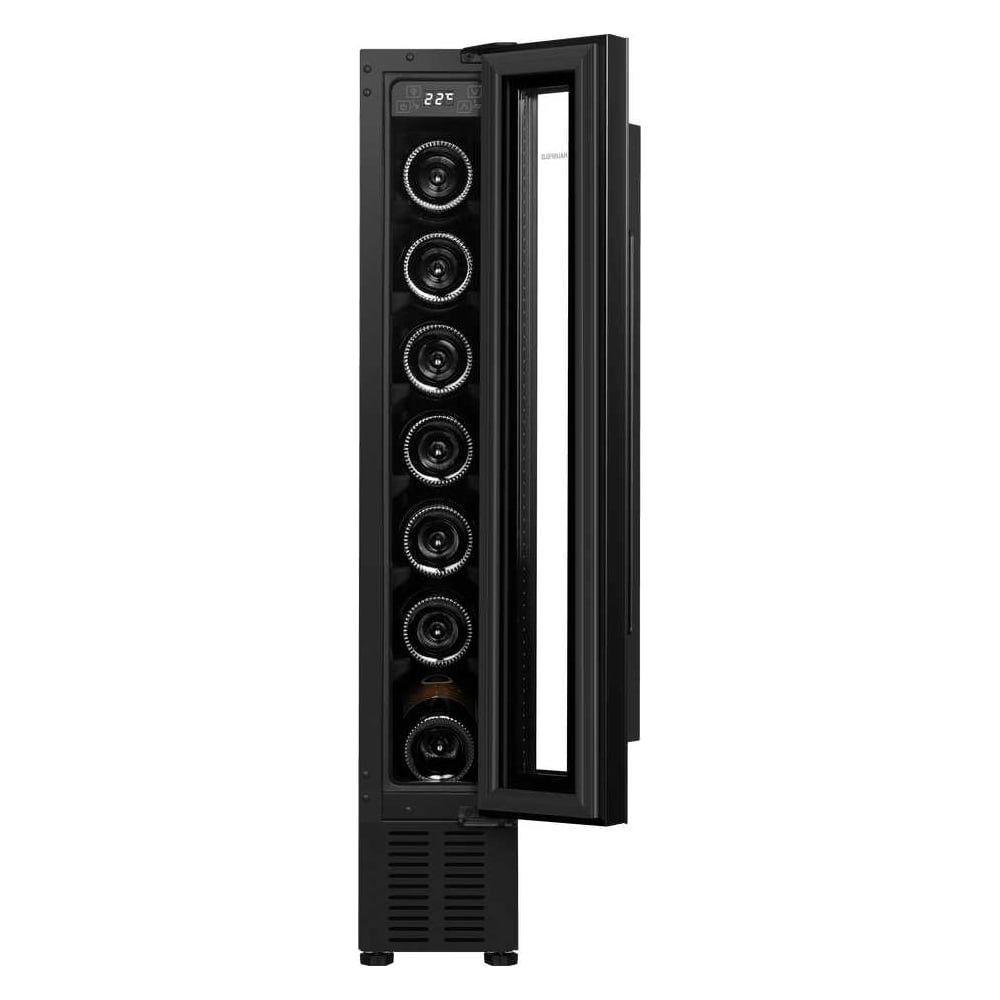 Современный винный шкаф MBWC-20S7 – инновационное решение проблемы качественного хранения вина. Расширенная функциональность, изысканный дизайн, полноценная имитация условий «винного погреба» – всё это винный шкаф MBWC-20S7. В нем можно хранить до 7 бутылок при температуре от 5 ° C до 20 ° C. Напитки нужной температуры, всегда готовые к подаче. Винный шкаф для хранения вин при идеальной температуре Храните вино при нужной температуре в нашем винном шкафу, чтобы каждый бокал вина был идеальным на вкус. Вы можете легко выбрать температуру от 5 ° C до 20 ° C, чтобы создать нужные условия хранения. Храните самые разнообразные сорта вин Широкий температурный диапазон винного шкафа (от 5 ° C до 20 ° C) позволит хранить красные, белые и игристые вина, а также подготавливать их к подаче. Винный шкаф MBWC-20S7 в полной мере обеспечивает сохранность вина при правильной температуре, позволяет напитку дозревать, раскрывая его вкус и аромат. Продуманное внутреннее пространство. Забудьте о нехватке места в холодильнике для хранения вина и других напитков. В винном шкафу вы можете хранить до 7 бутылок одновременно. Универсальный винный шкаф для любого интерьера Изысканный дизайн модели делает её абсолютным выбором большинства: корпус выполнен из металла, окрашенной в чёрный цвет. Современная технология освещения зоны позволит вам в любое время эффектно продемонстрировать вашу винную коллекцию гостям. Каждая деталь модели гармонично дополняет друг друга, делая винный шкаф универсальным под любые стили интерьера. Дверца шкафа выполнена из тонированного стекла с защитой от УФ лучей. Сенсорная панель управления Управляйте всеми функциями винного шкафа с помощью интуитивно-понятной сенсорной панели управления одним касанием пальца. Эффективная циркуляция воздуха Шкаф оснащён внутренним вентилятором для равномерного распределения холодного воздуха ко всем полкам шкафа.