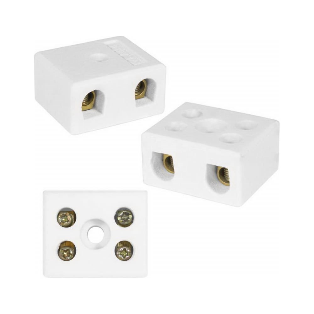 Клемма винтовая керамическая для проводов сечением 2.5 мм2, 2x2 контакта, 400 В, 12 А, -40...+450 °C, белая предназначена для соединения проводов, которые могут находиться под воздействием высоких температур. Изготовлена из качественного изоляционного материала, который обладает высокой стойкостью на пробой даже при воздействии влаги, устойчив к токам поверхностной утечки, не подвержена горению. Крепление корпуса через отверстие в корпусе. Диапазон рабочих температур, °C -40...+450. Количество контактов 2х2.