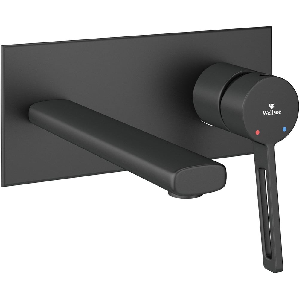 Лицевая металлическая панель (смеситель для раковины (цвет матовый черный). Внимание: отдельно требуется приобрести блок скрытого монтажа для подключения встраиваемого смесителя, арт. 181901000.) в актуальных благородных цветах идеально дополнят металлические сифоны, донные клапаны и угловые вентили коллекции Drainage System в аналогичной цветовой гамме.