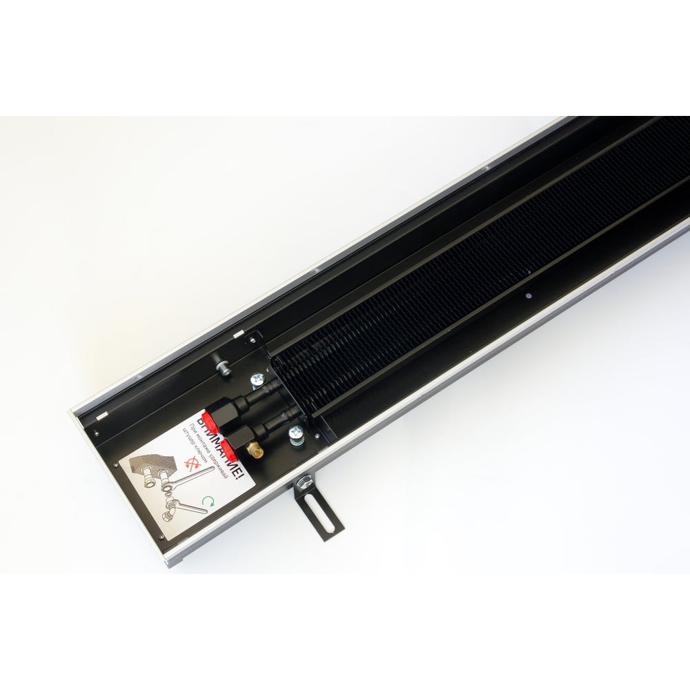 Внутрипольный водяной конвектор KVZ - это готовый к монтажу отопительный прибор, который устанавливается в околооконные ниши, подоконники, дверные проемы, на лестничные площадки, в помещения с крытыми бассейнами, в зимние сады и т. д.Безопасен для детей и животных, не имеет острых углов, обжигающий теплообменник спрятан под решеткой.Наши конструкторы увеличили теплообменник радиатора на 40 мм, по сравнению с обычными конвекторами, и доработали специальными отсекателями, что увеличило теплоотдачу до 10% при компактном размере самого конвектора.Декоративные заглушки скрывают все подключения и дополнительное оборудование, они, как и теплообменник, выкрашены износостойким порошковым покрытием в черный цвет и незаметны глазу.Конвектор подключается к однотрубным или двухтрубным системам отопления, имеет U-образный профиль декоративной рамки.Над теплообменником устанавливается рулонная решетка для радиатора отопления алюминиевая (приобретается отдельно)Дополнительные характеристики:Максимальная температура теплоносителя (вода гликоль) 130 градусов.Диаметр подключения 1/2".Рекомендуемое давление в системе 10 бар рабочее 16 бар проверочное испытание конвектора 25 барВнимание! Фото условное, актуальные габариты указаны в технических характеристиках.