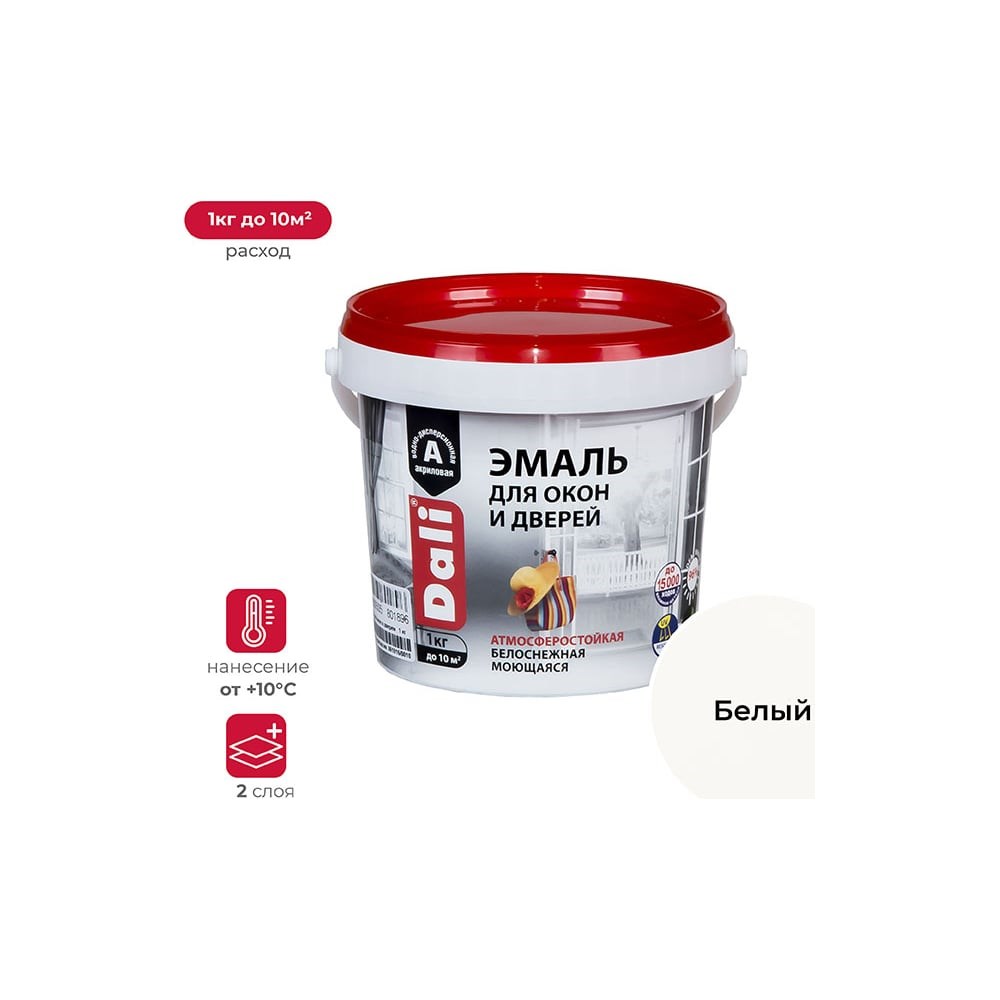 Предназначена для защитно-декоративной обработки деревянных окон и дверей. Применяется внутри и снаружи помещений. Допускается использование по минеральным поверхностям * Не предназначена для окрашивания деревянных фасадов больших площадей, а также полов и подоконников. Условия проведения работ t° окружающего воздуха и поверхности от +10° до +40°С относительная влажность воздуха не более 80%. Подготовка поверхности - ранее окрашенные поверхности тщательно очистить от предыдущего лакокрасочного покрытия пораженные поверхности очистить от биопоражений и загрязнений универсальным антисептиком Dali™; - при необходимости зашпатлевать отдельные участки шпатлевкой для дерева Eurotex™, после чего обеспылить поверхность влажной ветошью; - для получения наиболее качественного покрытия возможно предварительное грунтование поверхности эмалью для окон и дверей Dali™, разбавленной водой в соотношении 1:1. Разбавление: для грунтования: допускается, но не более 30% от массы эмали для окрашивания: допускается, но не более 10% от массы эмали. Разбавитель: вода. Температура применения: от +10°С, относительная влажность воздуха менее 80%. Количество слоев: 2. Расход: в 1 слой 1кг до 10м². Высыхание: при t° +20±2°C на отлип и межслойная сушка – 1 час, окончательный набор прочности покрытия – 5 суток. Степень глянца: 24/полуматовая ед./ класс. Класс истирания: по DIN EN 13300: 1. Плотность: 1,30 – 1,40 г/см³. Очистка инструмента: вода. Белый