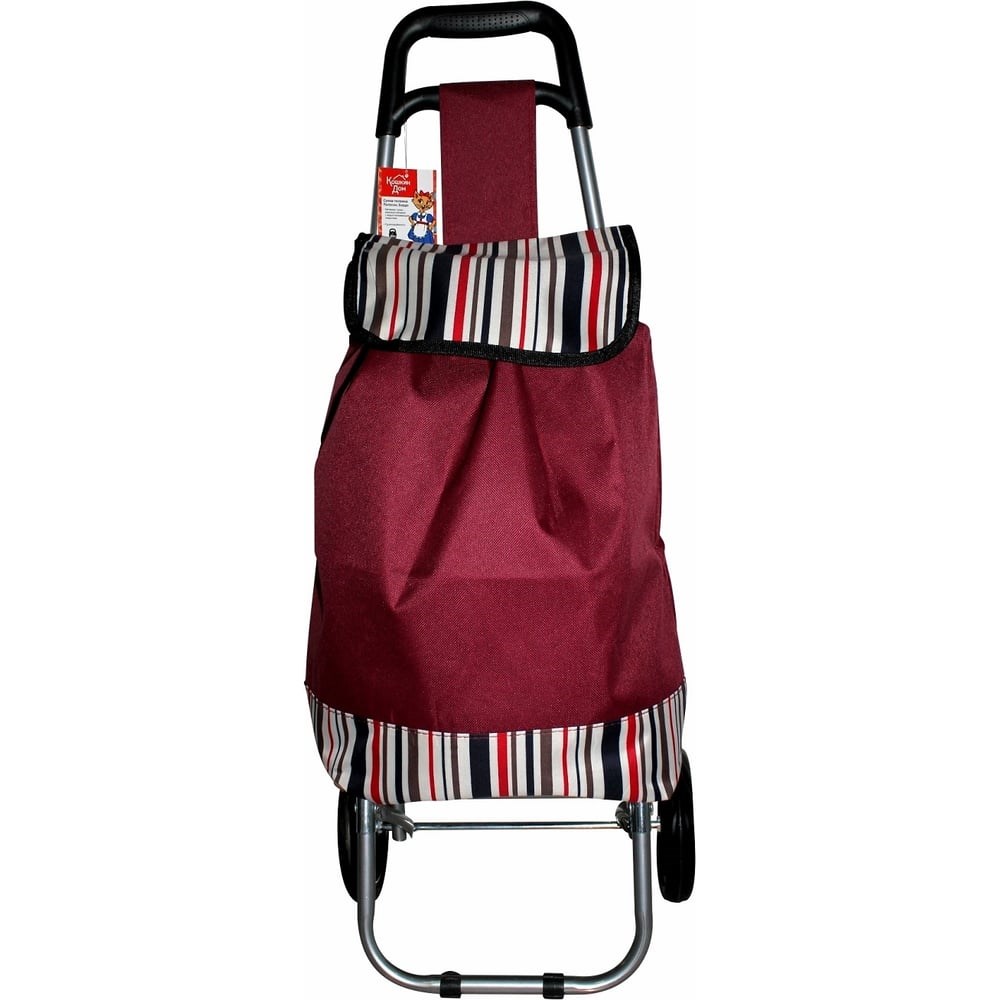 Сумка-тележка КОШКИН ДОМ водостойкая морозоустойчивая сумка, колеса ПВХ 14,5см, полоски, БОРДО 30-07-005 выполнена из пластика в сочетании с металлом и брезентом. Сумка-тележка подходит для различных целей и долго прослужит своему владельцу. Изделие можно брать с собой в магазин, в поездку на дачу, для хранения и перевозки вещей. Благодаря колесам тележку легко перемещать. Узел крепления - металлический.