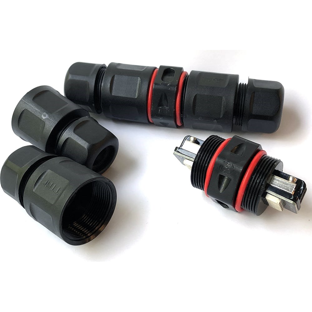 Водостойкий разъем TTAF Elektronik 3 силовых полюса/6 сигнальных 250V 25A/1А IP67 WPI-3602M25 I-образной формы используется для обеспечения надёжного герметичного соединения кабеля при подключении электронных устройств к сети в полевых условиях. Номинальное напряжение 250В AC/ 25А для силовых контактов (сечение кабеля 0,5..3,5кв.мм), ток 1А для сигнальных контактов (максимальное сечение кабеля 0,35 кв.мм) , диаметр кабеля 10-14мм. Температура эксплуатации от -40 до +85°С.