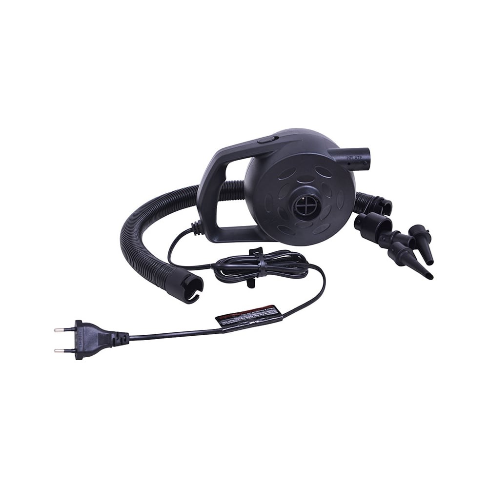 Включите 3 насадки, подходящие для всех надувных лодок для отдыха. Макс. Давление воздуха: 1,3 фунта на квадратный дюйм (9 кПа). Мощность: 300 Вт, 220-240 В, 50 Гц. Класс защиты от поражения электрическим током II.