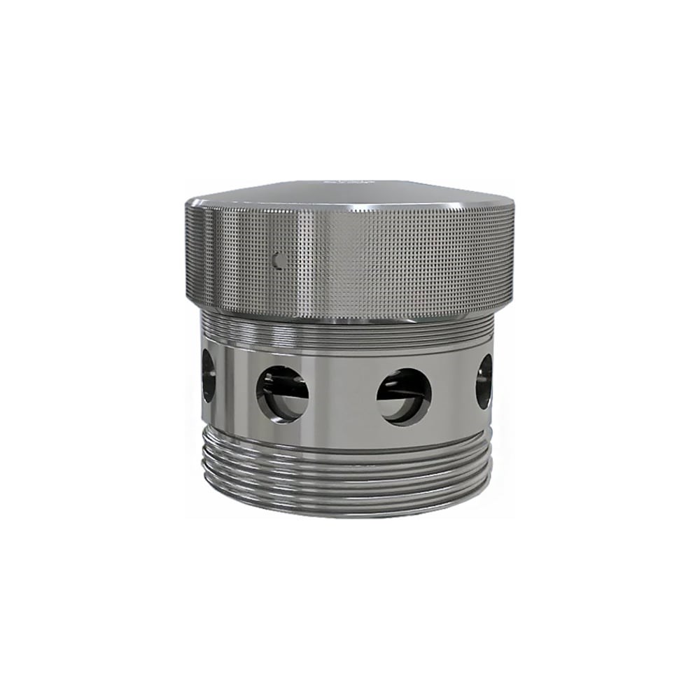 Воздушный клапан двойного действия устанавливается в верхней части емкости и предназначен для предотвращения нежелательного сверхдавления и вакуумного давления в баках и ёмкостях. Клапан позволяет выравнивать давление в ёмкости при изменении температур, наполнении или сливе баков и ёмкостей. Состоит из: корпуса из двух частей, пружины, которая отвечает за сброс избыточного давления, уплотнения для обеспечения герметичности и подвижной секции, закрывающей нижнюю часть клапана. Изготовлен согласно стандарту DIN из нержавеющей стали AISI 304.