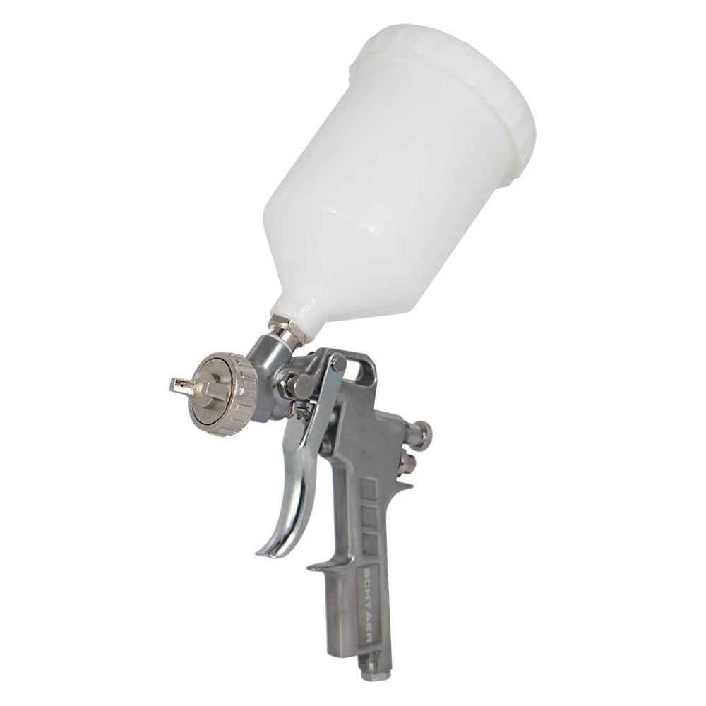 Воздушный краскораспылитель SCHTAER SCH-990-1.5 предназначен для нанесения любых видов покрытий: эмалей, грунтов, лаков и т.п. Исполнен в легком прочном металлическом корпусе. Верхний бачок 650 мл. Расход воздуха: 127-227 л/мин. Возможность регулировки подачи воздуха, рабочего материала и формы факела (до 20 см). Игла и сопло окрасочного пистолета сделаны из нержавеющей стали.