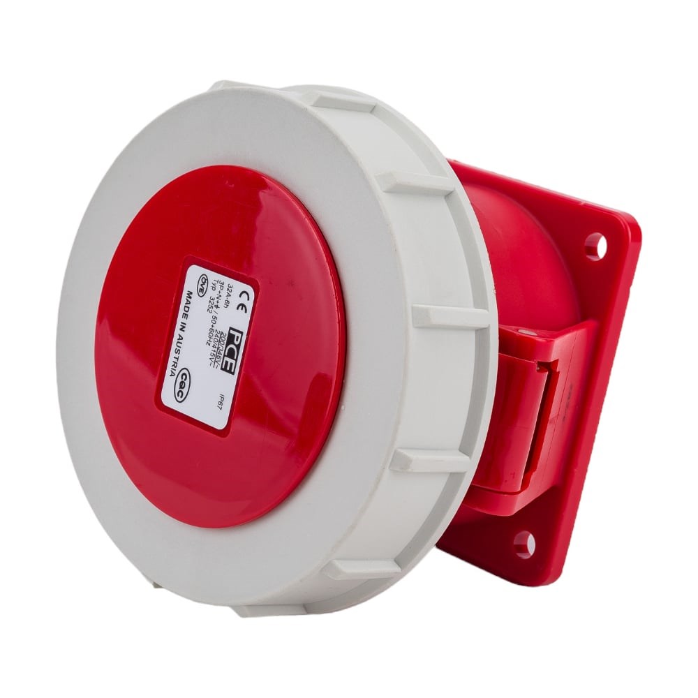 Встраиваемая розетка PCE 32А 380V 3P+N+E IP67 3252-6 изготовлена из полиамида 6, стойкого к химическим соединениям, имеет высокую надежность и длительный срок эксплуатации. Отличительными особенностями являются следующие особенности: Огнестойкость и термоустойчивость. Высокая устойчивость к различным химическим веществам. Прекрасная устойчивость к ударам. Отсутствие кадмия т галогенов (фтора, хлора, с большой жесткостью и твердостью, брома, йода, астата). Очень высокие изоляционные свойства. Высокая термическая стойкость (само затухающий материал). Высокая стойкость на разрыв. Соответствие норме RoHS 2002/95/EG. Высокая стойкость к истиранию. Высокая стойкость к атмосферным изменениям. Винтовые клеммы.