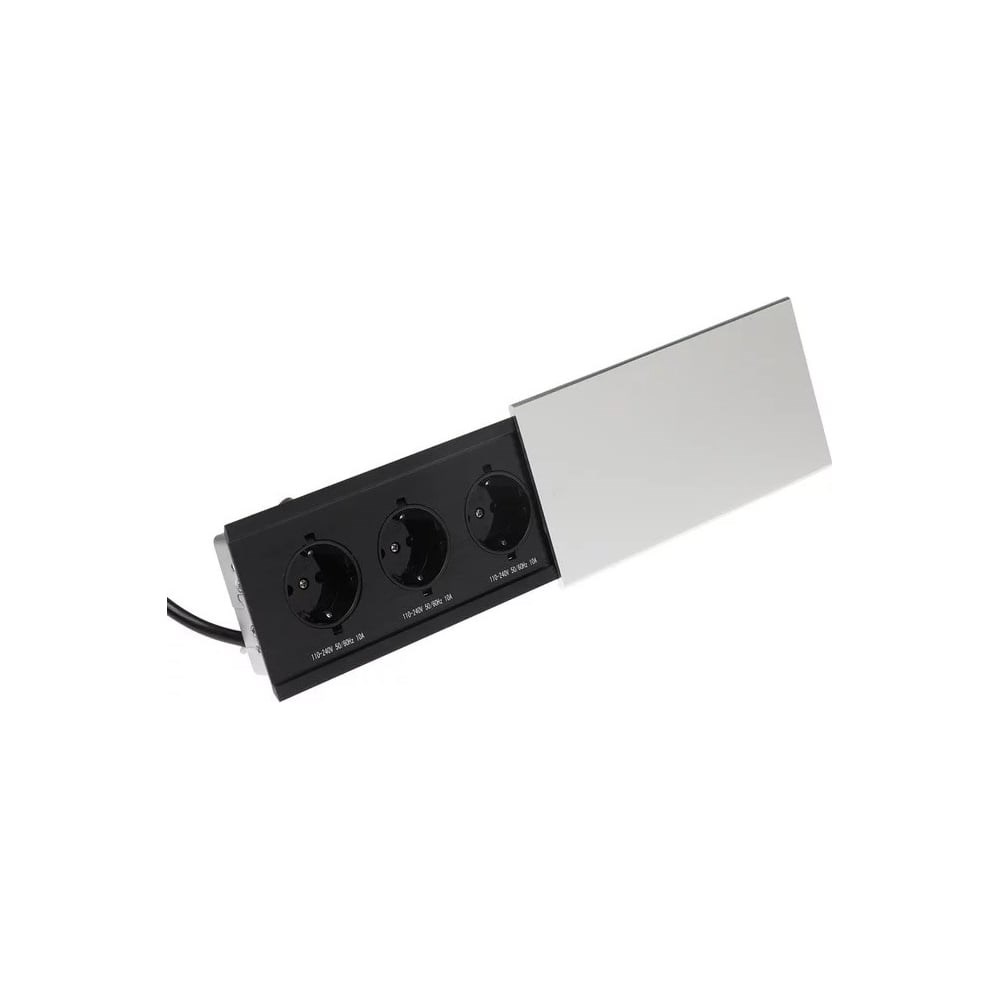 Розетка создана для организации рабочего пространства в доме или офисе, оснащена крышкой со скользящим открытием, которая защищает от влаги и грязи. Удлинитель прилегает к столешнице вплотную, создавая почти гладкую поверхность. Подходит для использования на кухонных столешницах, в офисах, выставочных и конференц-залах, а также в магазинах и гостиницах. Дополнительная техническая информация: Провод 1.5 м с вилкой Врезные размеры, 185х70х40мм Количество розеток, 2 EURO и 2 USB Напряжение, 110-240 В Максимальная мощность, 2300 Вт
