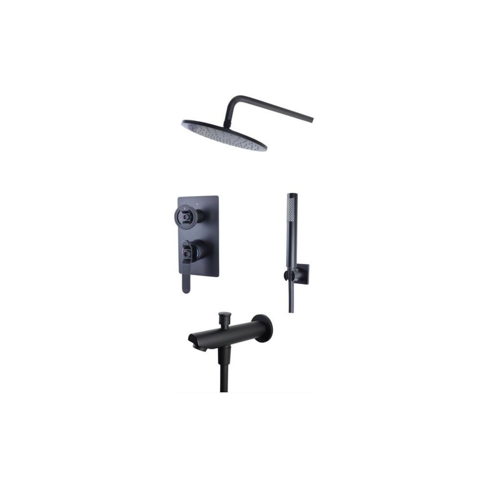 Встраиваемый душевой комплект BRONZE DE LUXE 1760's (верхний душ 250, ручной душ, излив) черный матовый 6630SB