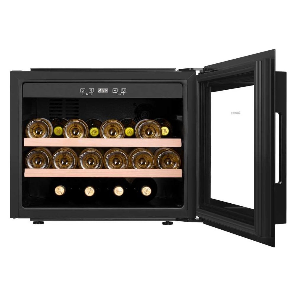 Современный винный шкаф MBWC-62S28 – инновационное решение проблемы качественного хранения вина. Расширенная функциональность, изысканный дизайн, полноценная имитация условий «винного погреба» – всё это винный шкаф MBWC-62S28. В нем можно хранить до 28 бутылок при температуре от 5 ° C до 20 ° C. Напитки нужной температуры, всегда готовые к подаче. Винный шкаф для хранения вин при идеальной температуре Храните вино при нужной температуре в нашем винном шкафу, чтобы каждый бокал вина был идеальным на вкус. Вы можете легко выбрать температуру от 5 ° C до 20 ° C, чтобы создать нужные условия хранения. Храните самые разнообразные сорта вин Широкий температурный диапазон винного шкафа (от 5 ° C до 20 ° C) позволит хранить красные, белые и игристые вина, а также подготавливать их к подаче. Винный шкаф в полной мере обеспечивает сохранность вина при правильной температуре, позволяет напитку дозревать, раскрывая его вкус и аромат. Продуманное внутреннее пространство. Благодаря продуманному внутреннему исполнению и съемным полкам вы сможете размещать до 28 бутылок. При желании можно извлечь полку и разместить большее количество бутылок. Для размещения винных бутылок, шкаф оснащен 2 крепкими полками из массива бука. Универсальный винный шкаф для любого интерьера Изысканный дизайн модели делает её абсолютным выбором большинства: корпус выполнен из металла, окрашенной в чёрный цвет. Современная технология освещения зоны позволит вам в любое время эффектно продемонстрировать вашу винную коллекцию гостям. Каждая деталь модели гармонично дополняет друг друга, делая винный шкаф универсальным под любые стили интерьера. Дверца шкафа выполнена из тонированного стекла с защитой от УФ лучей. Сенсорная панель управления Управляйте всеми функциями винного шкафа с помощью интуитивно-понятной сенсорной панели управления одним касанием пальца. Эффективная циркуляция воздуха Шкаф оснащён внутренним вентилятором для равномерного распределения холодного воздуха ко всем полкам шкафа.