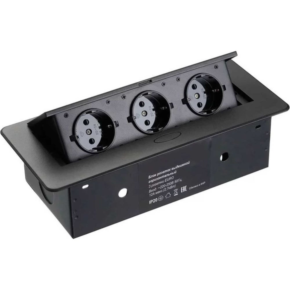 Выдвижной встраиваемый блок розеток, на 3 EURO розетки, TORO-01-20 используется для монтажа в столах и столешницах, на кухне и в офисе, в навесных шкафах и т.д. Блок розеток поставляется с металлической монтажной коробкой. Дополнительные характеристики: Материал: корпус, верхняя рамка, установочная коробка из металла. Врезное отверстие - 225х108 мм. Напряжение: 220-250 В. Максимальная мощность: 3600 Вт. Мощность позволяет подключать большинство бытовых приборов. Выдвижная розетка полностью из металла, лицевая панель выполнена из алюминиевого сплава, установочная коробка и сопутствующие элементы из стали. Это положительно сказывается на надежности и долговечности конструкции.