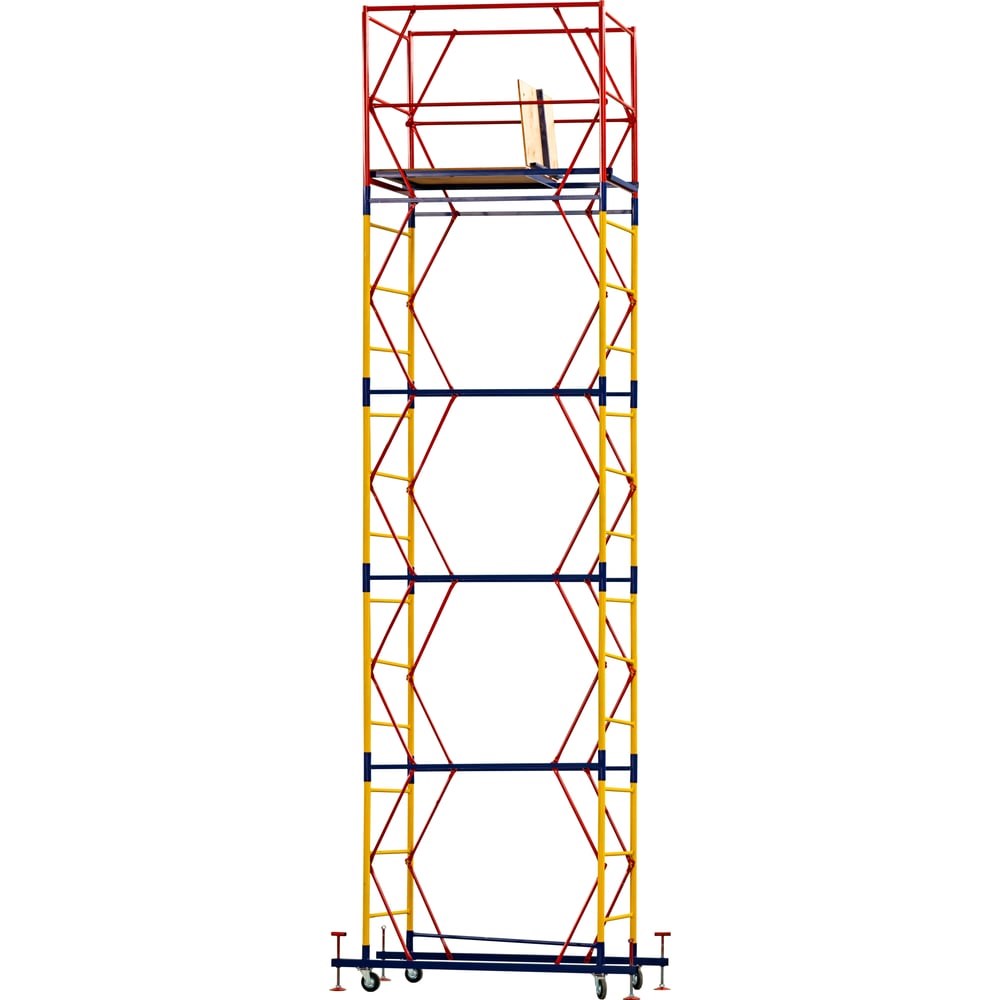 Промышленник Вышка ВПР 0,7x1,6 H=6,4м 0764ВПР - это компактная и надежная модель, которая предназначена для внутренних работ и работ в узких пространствах. Она легко собирается без использования специального инструмента, благодаря флажковым механизмам соединения элементов. Вышка оборудована большими прорезиненными колесами с фиксаторами положения, что позволяет легко перемещать ее по объекту. Это особенно удобно при выполнении работ на разных участках. Модель оснащена настилами из фанеры толщиной 10 мм, которые обеспечивают безопасность и удобство при работе. При необходимости, можно докупить дополнительный настил для работы вдвоем. Вышка-тура выдерживает максимальную нагрузку до 250 кг, что делает ее подходящей для выполнения различных работ. Для обеспечения устойчивости и безопасности при работе на высоте более 5 метров рекомендуется использовать комплект стабилизаторов. Вышка-тура изготовлена из стали, что обеспечивает ей прочность и долговечность. Каркас и рабочая площадка выполнены из стали толщиной 1.5 мм, что гарантирует надежность конструкции. В процессе транспортировки вышка может получить визуальные потертости и царапины,