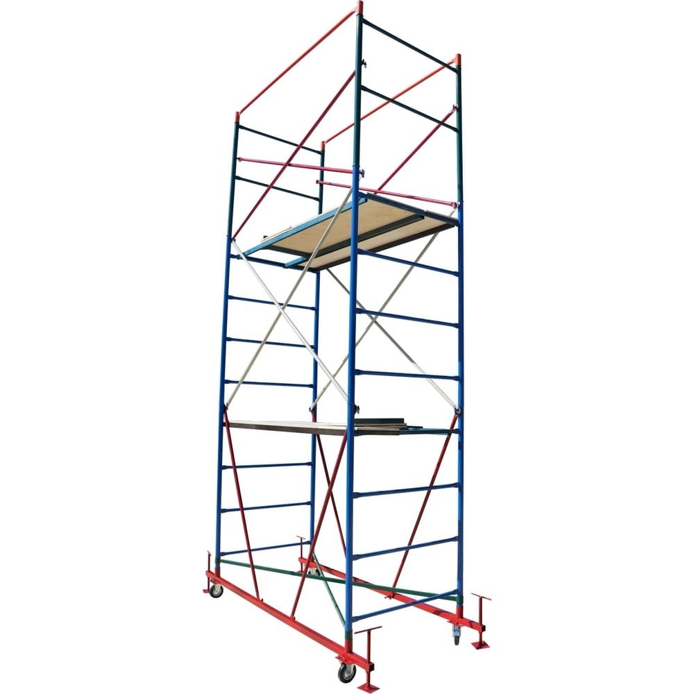 Вышка тура на колесах модели УВТ-10 используется для строительных, монтажных, отделочных и иных работ на малой высоте. В основании мобильных подмостей лежат маршевые рамы, высота которых наращивается при стыковке методом «труба в трубу». Для предотвращения обвала конструкций, рамы стягиваются диагоналями, а для обеспечения долговечности – все элементы из стали покрываются полимерной краской порошкового типа. Внимание, изображение товара может отличаться от реального! Верные параметры указаны в технических характеристиках товара.