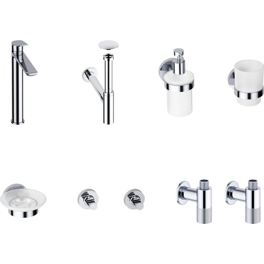 Высокий смеситель для накладной раковины Wellsee ICON! for life в наборе 8 в 1 201000411