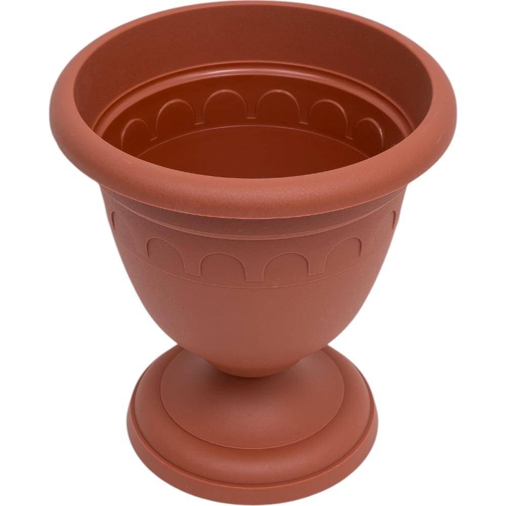 Вазон, выполненный из качественного пластика, станет прекрасным элементом декора загородного дома, сада, квартиры, офиса или любого другого помещения. Имеет сборную конструкцию из 2 частей: чаши и ножки. Изделие выполнено в классическом стиле и прекрасно подойдет для выращивания цветов и однолетних растений. Вазон легко впишется в композицию дома или сада и будет служить красивым украшением.