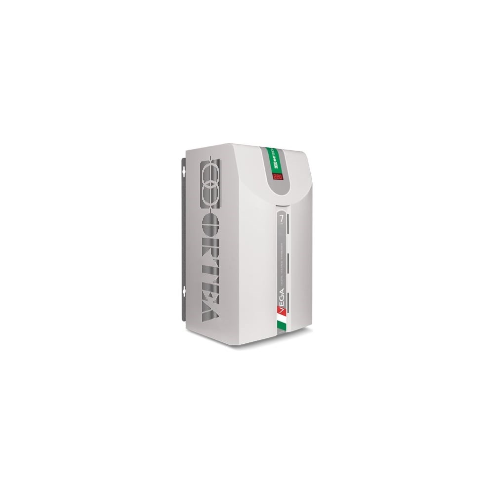Стабилизатор напряжения 7 кВА, 220В, высокоточный, электромеханический ORTEA Vega 7-15/5-20 обеспечивает высочайшую точность выравнивания входного напряжения - ±0,5%. Это позволяет использовать его не только дома, но и для высокочувствительного промышленного оборудования. Устройство обладает настенным креплением. Современный дизайн порадует глаз. Прибор можно устанавливать даже в неотапливаемое помещение с температурой воздуха до -25°С. Благодаря высокому КПД оборудование не создает излишней нагрузки на сеть. При стабилизации повышенного напряжения стабилизатор экономит потребляемую мощность. Модель относится к классу энергоэффективных устройств. Наличие системы отвода теплого воздуха увеличивает ПВ. Это также снижает вероятность перегрева устройства.