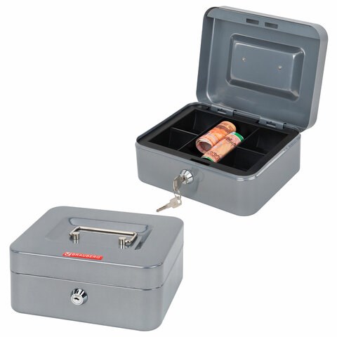 Ящик для денег, ценностей, документов, печатей, 90х160х200 мм, ключевой замок, серебристый, BRAUBERG, 291352