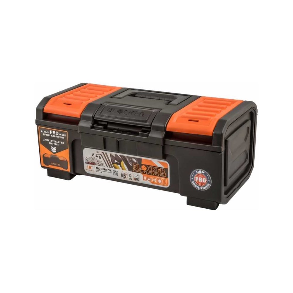 Ящик п/п 388х215х160 с крышкой, на клипсах, с ручкой цв. чёрный с оранжевой крышкойобладает большой вместимостью, которая позволяет расположить внутри необходимое количество ручного инструмента. Ящик для инструментов сверхпрочной конструкции, допускающий использование в качестве стула или возвышенности при выполнении высотных работ. При компактных размерах выдерживает нагрузку 80 кг! Пружинный замок, приводимый в действие одной рукой, экономит время при многократных открытиях/закрытиях ящика. Помогает содержать в порядке и быстро находить необходимые инструменты и принадлежности к ним. Идеален для использования дома, на даче, в гараже, мастерской, в автомобиле. Хранение инструментов в ящике защищает от пыли и грязи. Наличие ручки позволяет переносить инструменты на место выполнения работ. Съёмный внутренний лоток позволяет отделить инструменты и аксессуары первой необходимости от основного отсека. Крышка ящика оснащена органайзерами для хранения мелочей. Возможность использования навесного замка защитит содержимое от свободного доступа, в том числе обеспечит безопасность детей. Для хранения крепежа и различных мелочей есть объемные углубления.