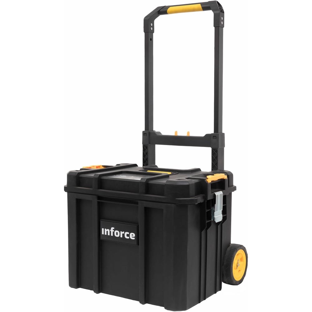 Ящик на колесах Inforce с возможностью объединения в систему MODULAR SYSTEM 06-20-13 упрощает хранение мелочей и ручного инструмента. Конструкция выполнена из прочного пластика, выдерживает значительные нагрузки. Есть замки, которые прижимают крышку и исключают случайное раскрытие. Благодаря дополнительным ребрам жесткости ящик можно нагрузить сверху и безопасно объединять в систему хранения. Грузоподъемность 80 кг.