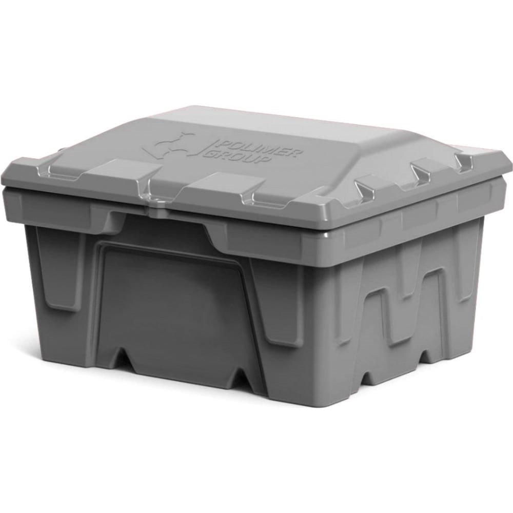 Ящик 250 л с крышкой POLIMER GROUP цвет серый FB12506 производитсяротационнымформованием из полиэтилена низкой плотности высокого давления LLDPE. Благодаря этому готовое изделие не имеет швов. Сертифицировано для хранения пищевых продуктов. Наличие крышки позволяет хранить сухие смеси без риска повреждения от осадков.
