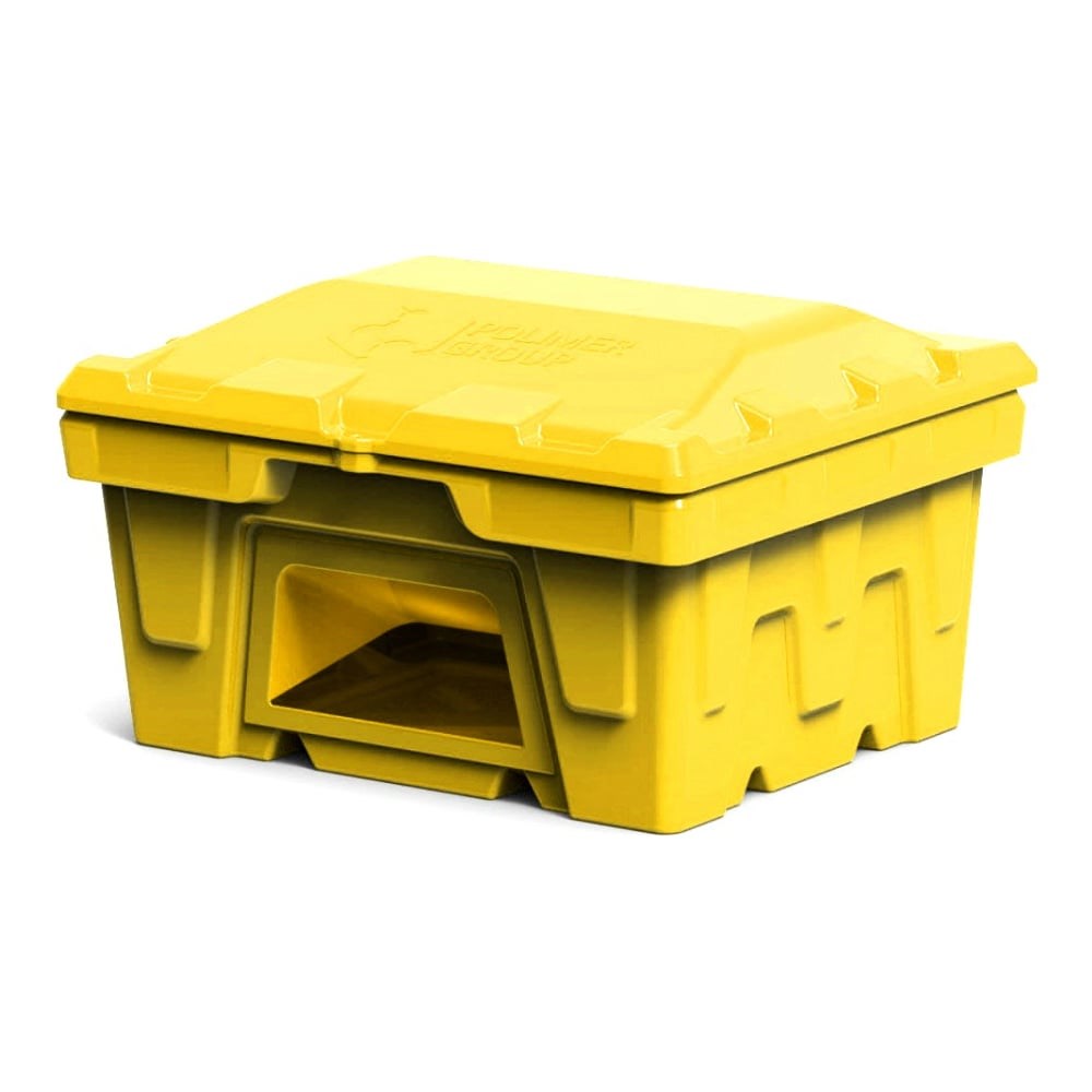 Ящик POLIMER GROUP 250 л, с крышкой и дозатором, цвет желтый FB22507 универсален для хранения песка, ветоши, гравия, реагентов (пескосоляной смеси, соли). Изготовлен из полиэтилена методом ротоформования, что придает особую прочность.Цвета: красный, серый, черный, желтый.