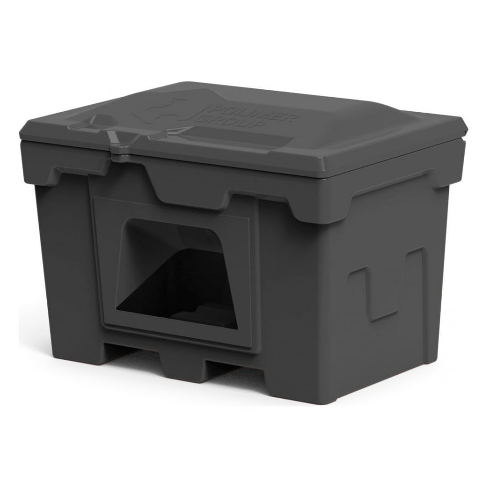 Ящик POLIMER GROUP 500 л, с крышкой и дозатором, цвет черный FB25001 производится ротационным формованием из полиэтилена низкой плотности высокого давления LLDPE. Благодаря этому готовое изделие не имеет швов. Сертифицировано для хранения пищевых продуктов. Модель сертифицирована для использования под химикаты. Имеет широкое применение.
