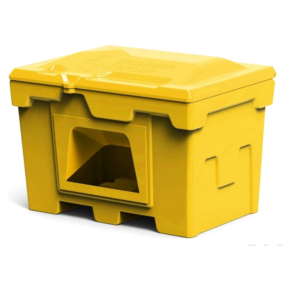 Ящик POLIMER GROUP 500 л, с крышкой и дозатором, цвет желтый FB25007 производится ротационным формованием из полиэтилена низкой плотности высокого давления LLDPE. Благодаря этому готовое изделие не имеет швов. Сертифицировано для хранения пищевых продуктов. Модель оснащена дозатором для удобного разделения груза на отдельные части.