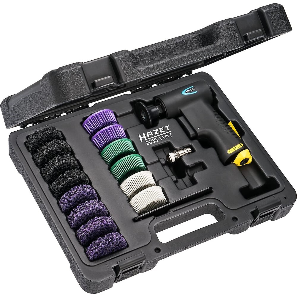 Зачистная машинка для удаления ржавчины, краски, остатков клея и герметика, а также очистка металлических поверхностей и сварных швов с использованием различных абразивных средств. Технические характеристики: • Расход воздуха: 79 л/мин • Внутренняя резьба 12,91 мм (1 /4"). • Скорость вращения 15000 об/мин • Габариты: 112.1x152x45 мм